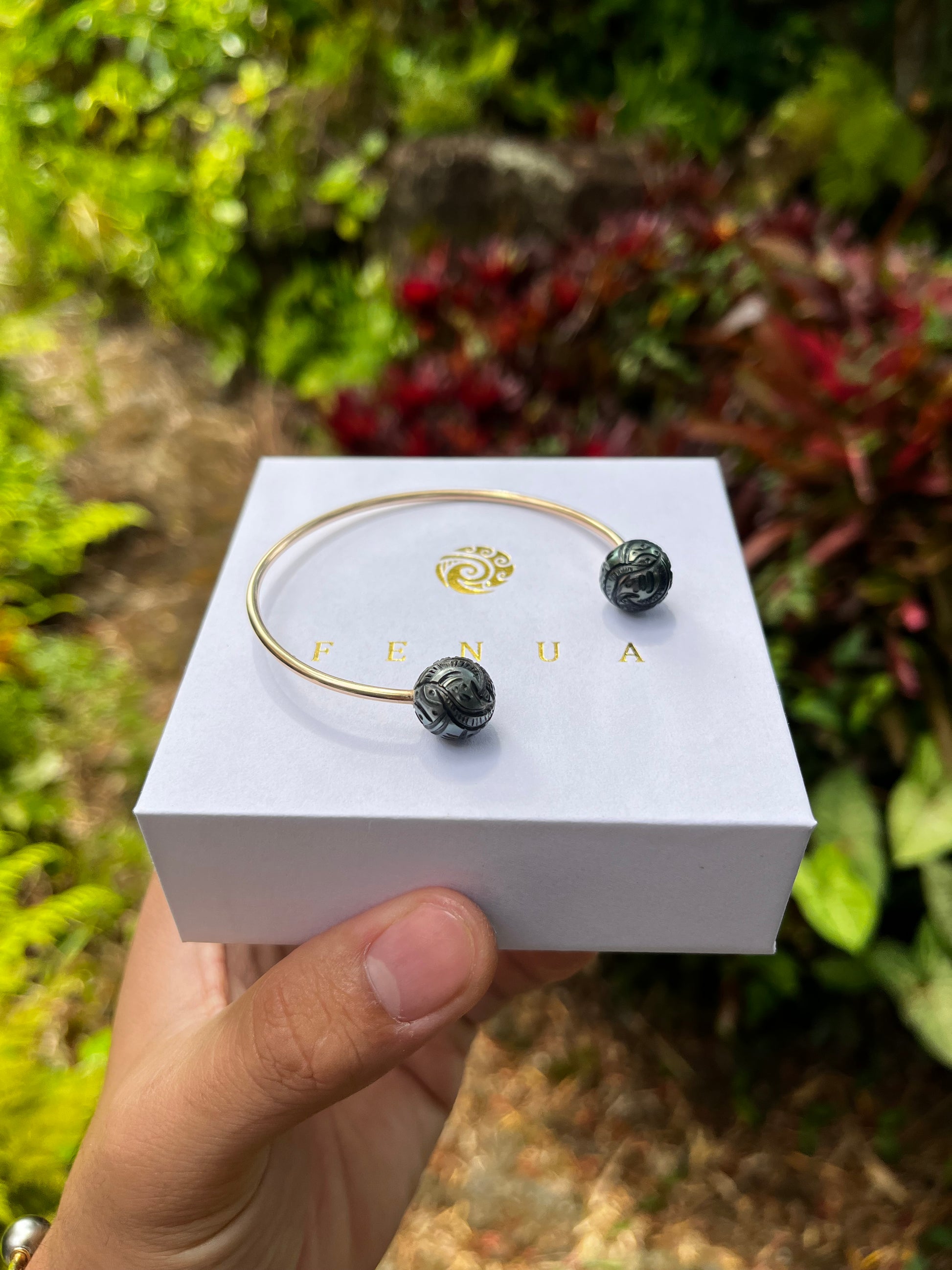 Engraved Pearl Cuff Bangle - 14kt gold-filled
