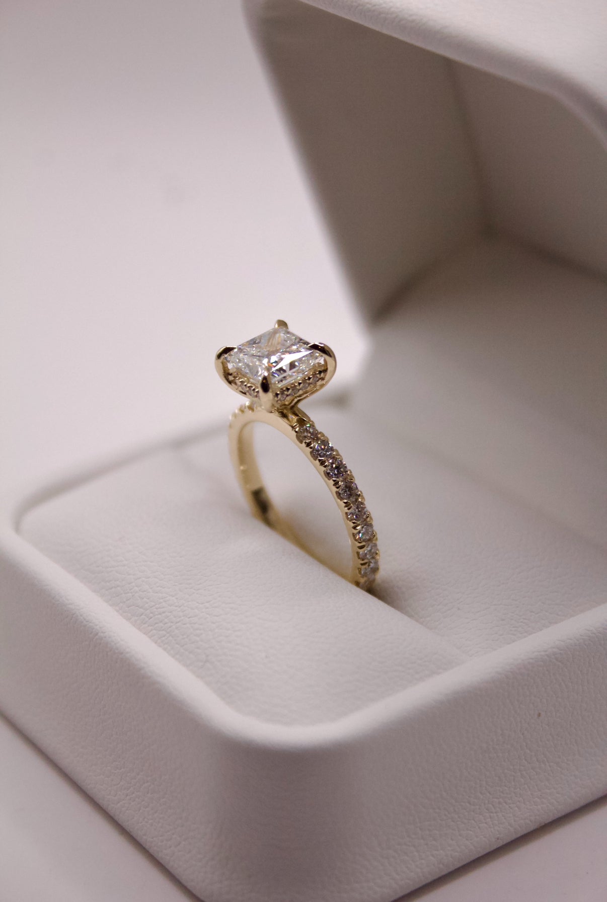 Princess Cut with Pavé and Halo Engagement Ring – 2mm, 14K Gold, 1ct Lab Diamond